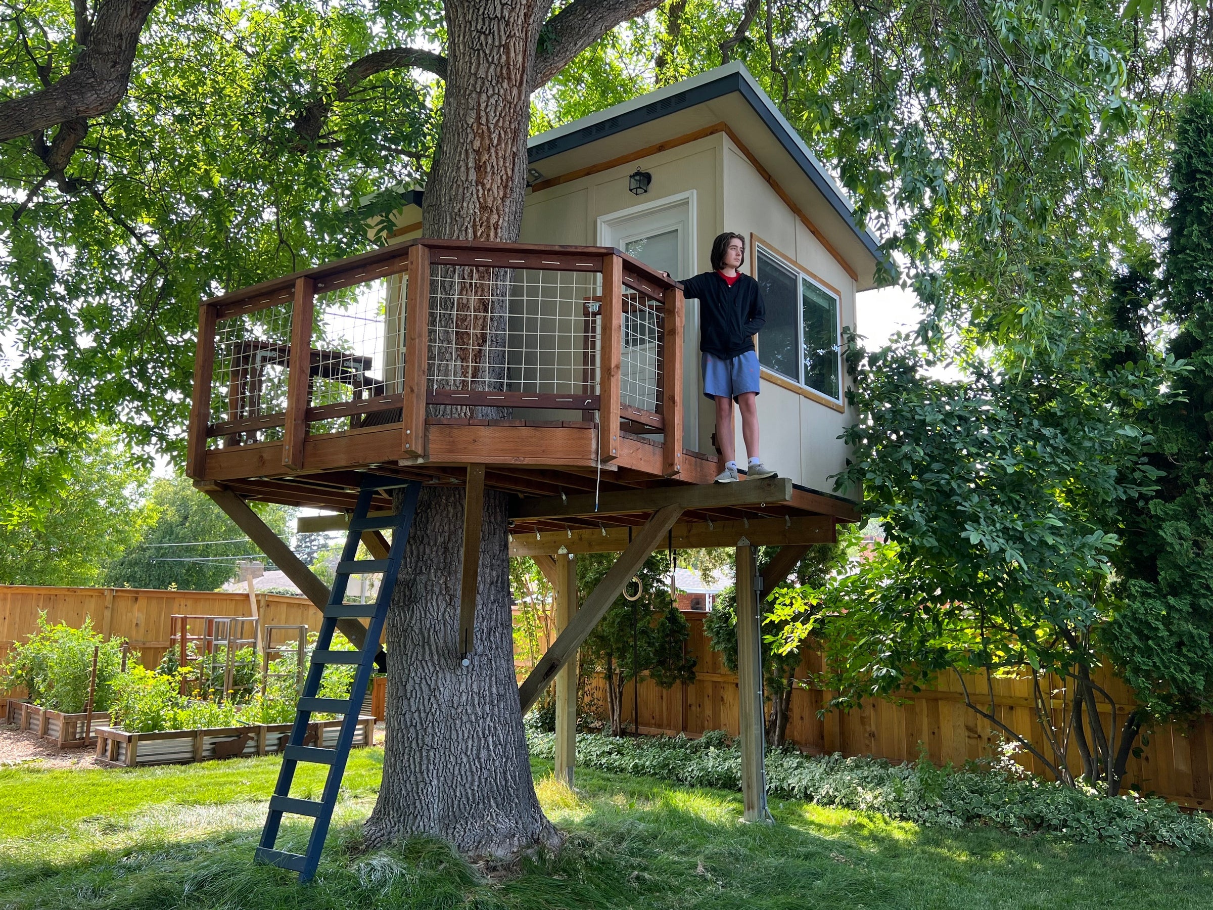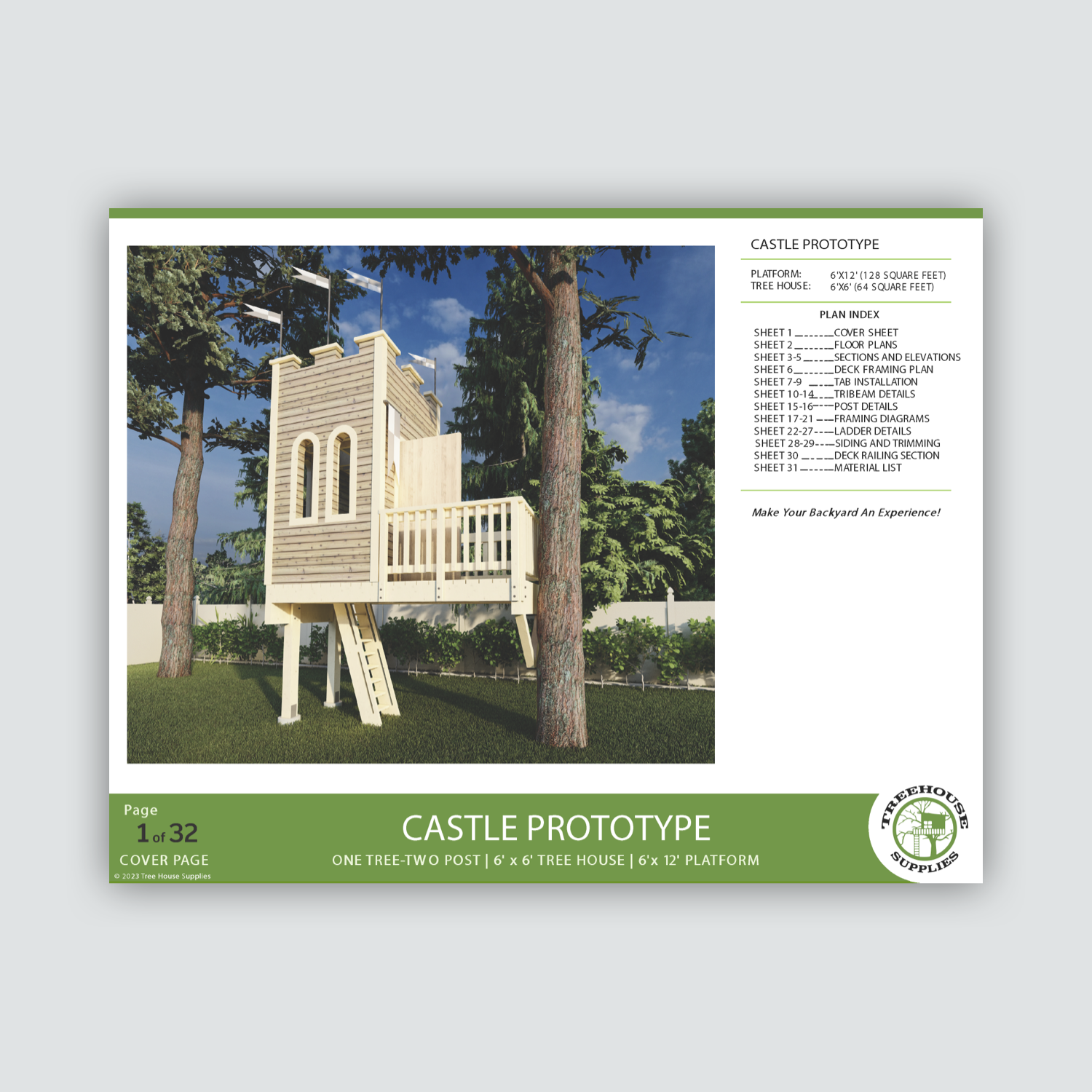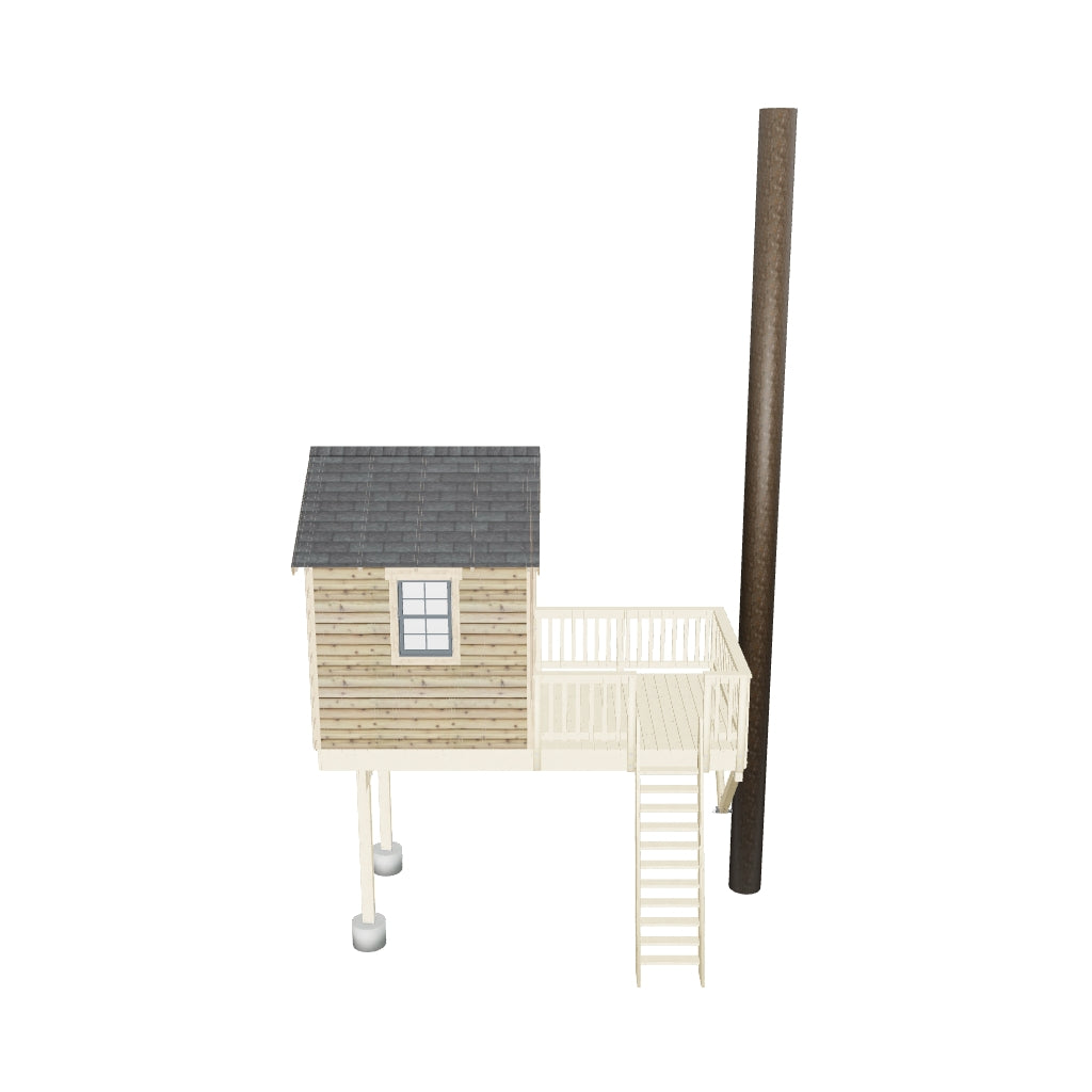 Build an enclosed treehouse or an open treehouse platform with a single tree on one side and two post to support the opposite side using Treehouse Supplies Custom Tree House Plans.