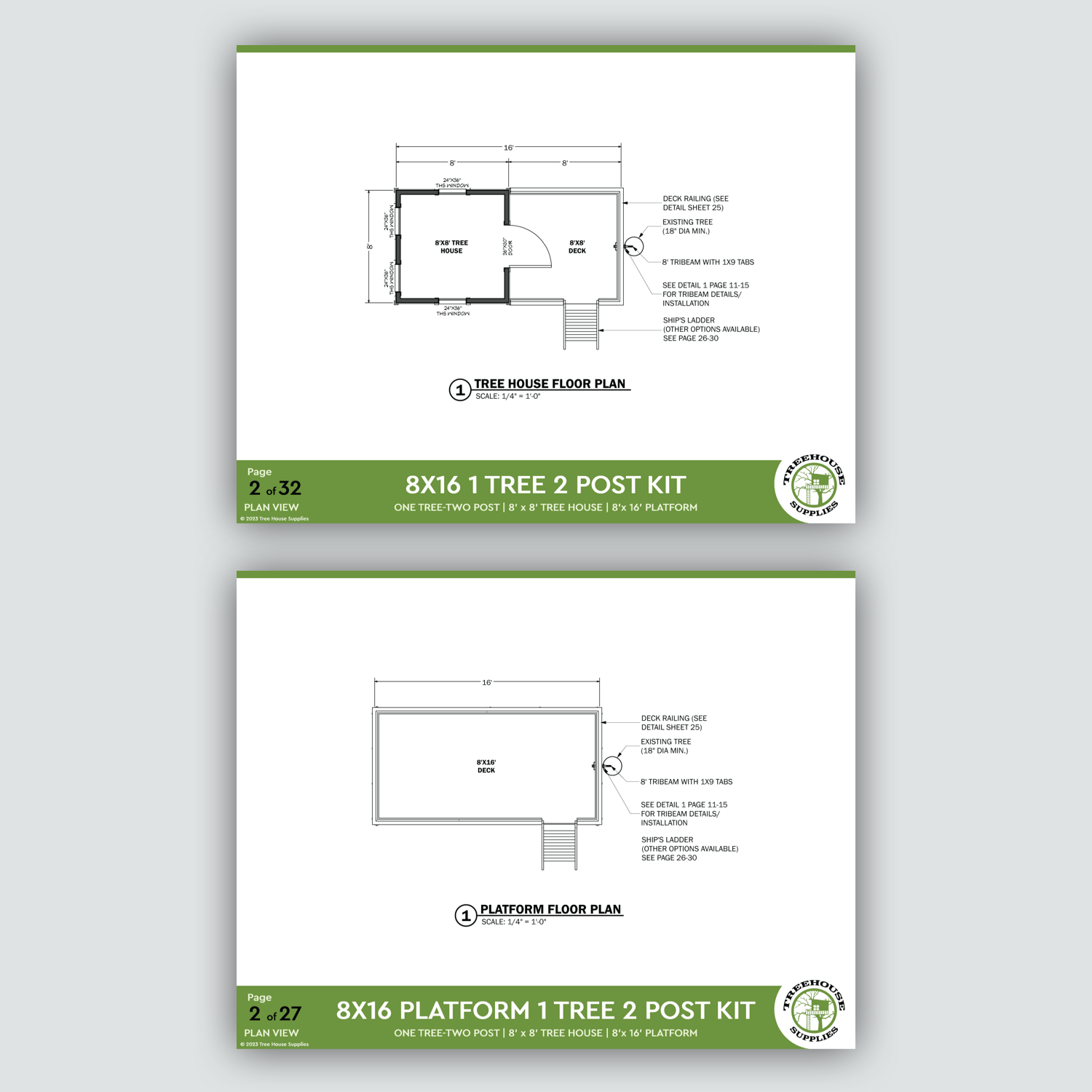 These plans contain CAD images and instructions to help you build your own treehouse. There are eight pages of main plans and seven optional detail sheets to help with trap doors, ladders or stairs, climbing walls, etc... If you have any questions after reading them, you may contact us for extra support. We're here to help!
