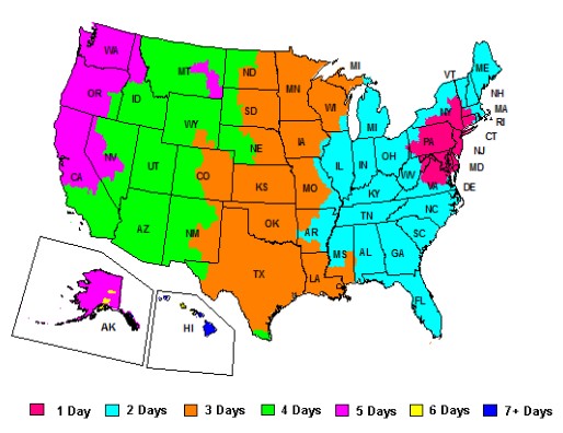 Below is the FedEx Ground shipping map. Locate your state to see your expected delivery time. Please refer to the chart below for FedEx Ground delivery times. Click here prior to selecting your shipping method for other FedEx Shipping options and their delivery times.